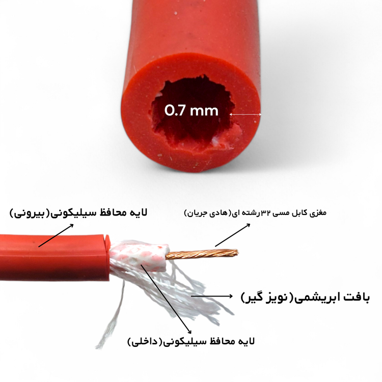 کابل 7میلی تمام سیلیکون نارنجی رنگ با مغزی 30رشته ای مسی و قلع اندود طرف کوئل سرسیم تمام برنجی طرف موتور سرسیم تمام برنجی با مقاومت سه صدم اهم یعنی تقریباً صفر بدون نویز و مقاومت حرارتی و برودتی بسیار بالا با کارکرد 120هزار کیلومتر بازدهی 100٪ و قدرت بالا کاهش مصرف سوخت و افزایش شتاب خودرو توجه:هنگام تعویض و بازدید شمع و وایر حدود نیم ساعت به موتور استراحت دهید و در حالت سرد موتور اقدام به بازدید شمع و وایر نمایید. این وایرها با شمع اصلی بهترین کارکرد را دارند. هر وایر رنگی لزوماً وایر تقویتی نیست!