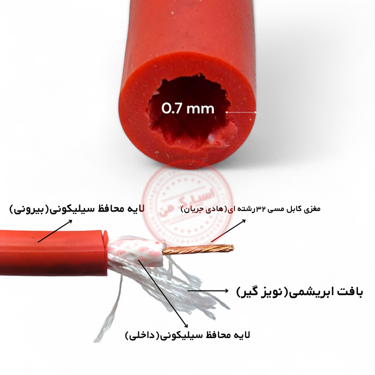 کابل 7.5میلی high voltag تمام سیلیکون قرمز رنگ با مغزی 32 رشته ای مسی و قلع اندود