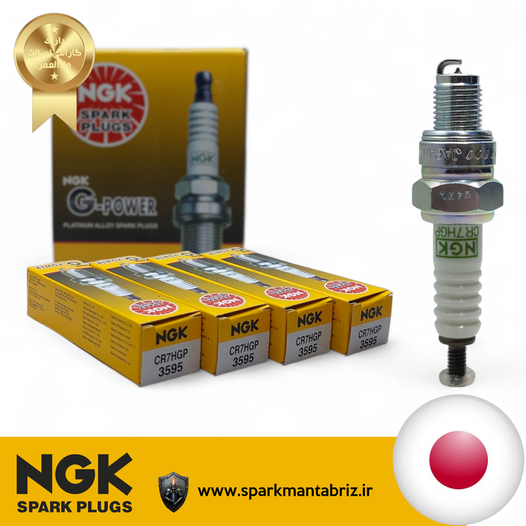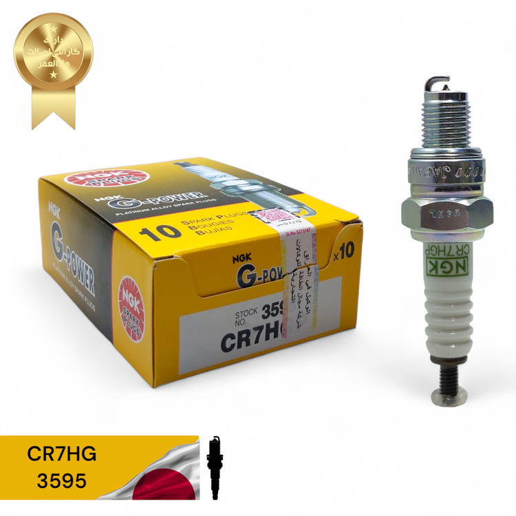 این شمع با کد فنی CR7HGP و استوک نامبر ۳۵۹۵ از کمپانی Niterra و ساخت ژاپن میباشد.این شمع از سری شمعهای G-POWER برند NGK است که با طراحی الکترود بالایی(الکترود منفی) به شکل ذوزنقه ای-خم شده از دو طرف- و الکترود سوزنی شکل ۶دهم میلیمتری از جنس فلز پلاتینیوم همراه هست، موجب افزایش محسوس قدرت احتراق و توان و قدرت موتور و کاهش مصرف سوخت خواهد شد.این سری از شمعهای NGK بدلیل کیفیت بهتر نسبت به سری های S(استاندارد) و V-POWER از محبوبیت بالایی برخوردارند.قیمت پایین در مقایسه با سایر برند ها از دلایل دیگر محبوبیت این شمعهاست.