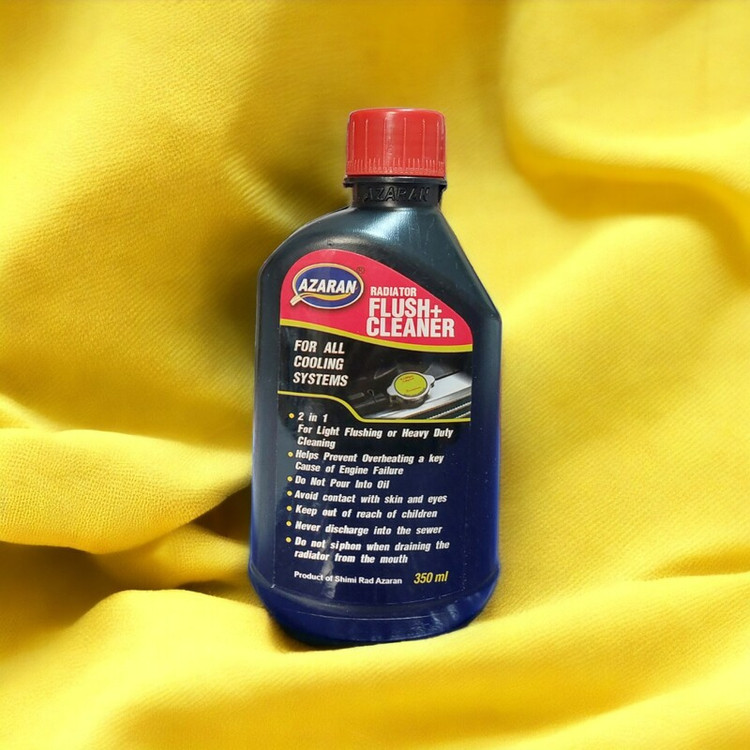 محلول داخل رادیاتورشوی 350میلی آذران جهت رسوب زدایی انواع رادیاتور و سرسیلندر بکار میرود. پیشنهاد ما به خریداران عزیز این است اگر قصد استفاده از پیشنهاد ما به خریداران عزیز این است اگر قصد استفاده از ضدیخ برای خودرویتان را دارید و در فصل گرم از ضدیخ استفاده نکرده اید و یا کسانی که خودروی جدید گرفته اند و نمی دانند که صاحب قبلی خودرویشان از ضدیخ استفاده کرده یا نه! بهتر است قبل از استفاده از ضدیخ حتماً از این محلول برای رسوب زدایی کامل استفاده کنند تا از خسارات احتمالی پیشگیری شود. نکات زیر را حتماً رعایت نمایید: داخل روغن نریزید. هرگز در فاضلاب تخلیه نکنید. دور از دسترس کودکان نگهداری شود. به نسبت شدت رسوب رادیاتور از یک روز تا سه روز جهت رسوب زدایی کامل استفاده شود. استفاده از این محلول در رادیاتورهای فرسوده و مدل قدیمی تر گاهاً باعث ایجاد نشتی میشود و این اتفاق ایرادی بر محصول نمی باشد. حتماً قبل از مصرف این محلول مایع داخل رادیاتور را در حدود 500میلی تخلیه نمایید.